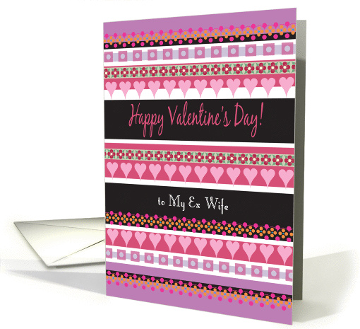 This Valentine's Day card for an ex wife, featuring hearts, flowers, and shapes in pinks, black, white, and lavenders.