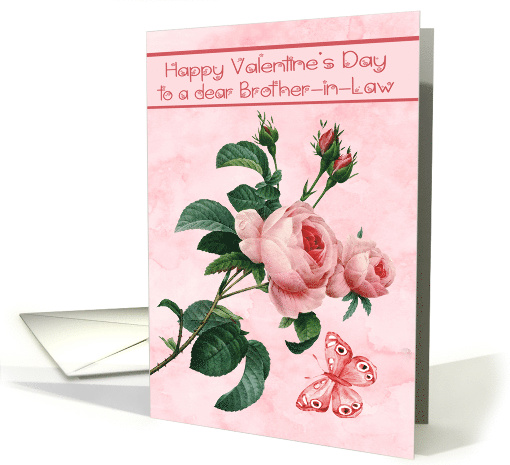 | Title: | Valentine's Day to Brother in Law with Pink Roses and a Butterfly |