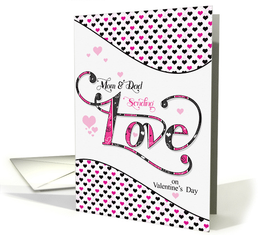 | Artist Notes: | Sending love to mom and dad on Valentine's Day with a modern typography design in pink and black hearts on white, sure to deliver your day of love message. |
