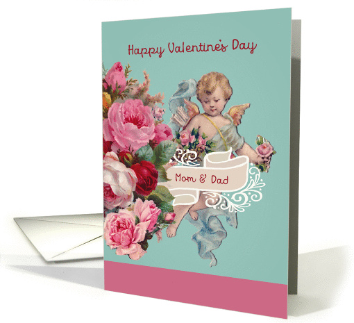 | Title: | Happy Valentine's Day, Mom and Dad, Vintage Cherub and Roses |