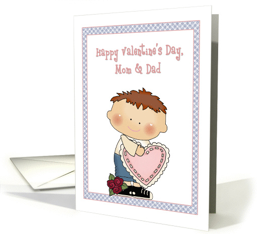 | Artist Notes: | Valentine Day card for Mom and Dad with cute little boy, flowers and pink heart in blue plaid frame. |