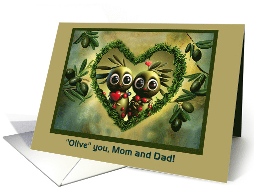 | Artist Notes: | Happy Valentine's day to your wonderful parents, be it mom and dad, mother and father or however you would like it worded as you can edit it. A cute couple of olive people with hearts and a fun message for them. |