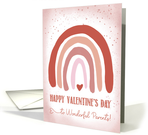 This Valentine's Day card designed for parents is a heartfelt expression of love and appreciation, featuring a hand-painted soft pink watercolor theme that radiates warmth and tenderness. The delicate strokes of pink create a romantic backdrop, symbolizing the enduring love between parents. At the card's center, a beautifully painted rainbow adds a touch of whimsy, representing the diverse spectrum of emotions and shared moments that have colored their journey as a couple and as parents. This artistic and carefully crafted card serves as a visual celebration of the deep bond between parents, making it a touching and personalized gesture to convey love and gratitude on Valentine's Day.