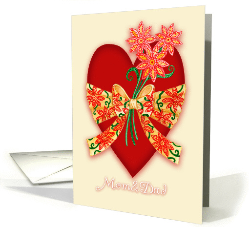 | Title: | Mom & Dad, Red Valentine Heart with Bow and Whimsical Flowers |