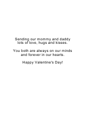 | Inside: | Sending our mommy and daddy lots of love, hugs and kisses. You both are always on our minds and forever in our hearts. Happy Valentine's Day! |