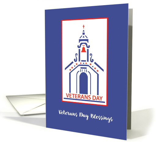 A simple chapel is outlined in blue, with the cross, church bell and stars are accented in red. Send Veterans Day blessings with this patriotic appreciation card.