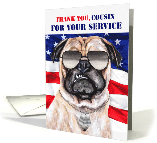 Title: | for Cousin Veterans Day Funny Patriotic Pug Dog with Flag |