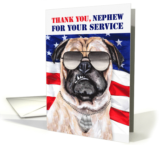 Show your appreciation on Veterans Day to your Nephew for his sacrifice and service to our country when you choose this funny pug dog with a real message of gratitude.