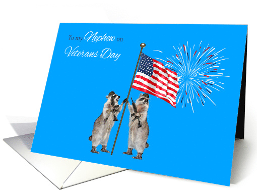 | Title: | Veterans Day to Nephew with Armed Patriotic Raccoons Holding a Flag |