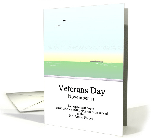 Veterans Day greeting from one veteran to another. This design features a navy aircraft carrier on the high seas. This day we respect and honor those who are still living and who served in the U.S. Armed Forces.