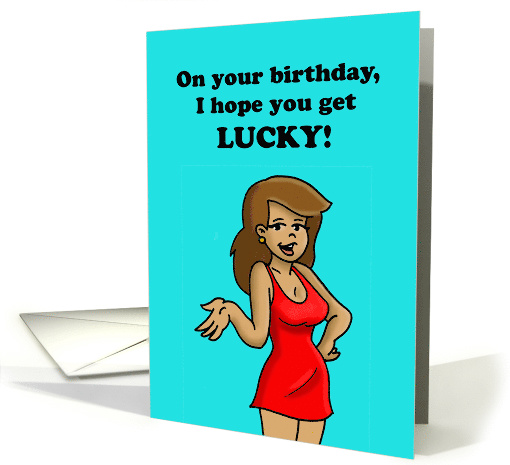Birthday card with a cartoon woman saying, On your birthday, I hope you get lucky! Inside says, And you blow out all the candles on the first try! Happy Birthday