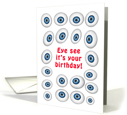 Eye see it's your birthday. A funny birthday card with lots of cartoon eyeballs.