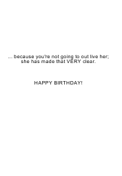 Inside: | ... because you're not going to out live her; she has made that VERY clear. HAPPY BIRTHDAY! |