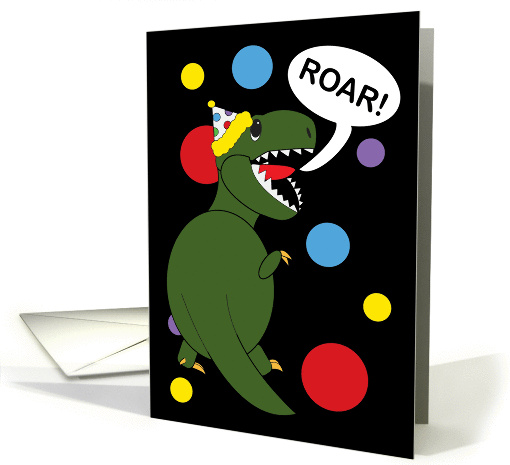 | Artist Notes: | A greenTyrannosaurus Rex wears a birthday party hat and says Roar! Roar is dinosaur for Happy Birthday! |