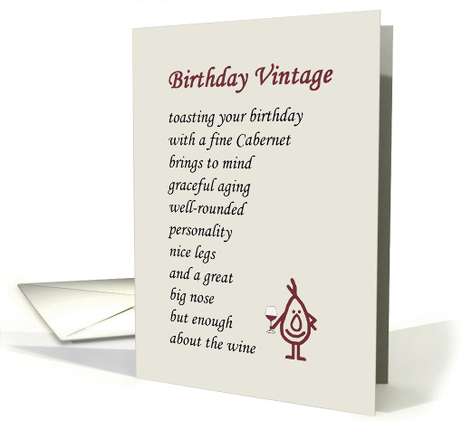 A Birthday Card, featuring a bad poem and illustration, that is perfect for the wine lover in your life.