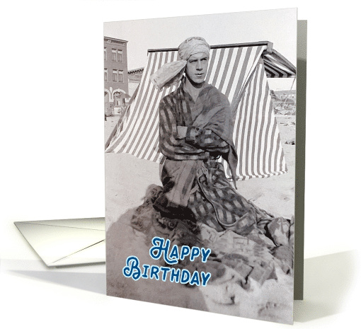 Wish someone suave a very Happy Birthday with this vintage photo of a suave man dressed like Rudolph Valentino on California's Long Beach in the 1920's.