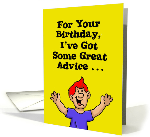 Birthday card with a cartoon figure saying, For your birthday, I've got some great advice ... Inside says Don't ever play leapfrog with a unicorn.