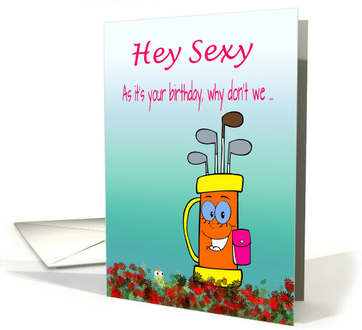 Sexy golfing humor birthday card. Colorful golf bag asking ... Hey Sexy As it's your birthday, why don't we ... Inside reads ... Get out in the open air and play a round?