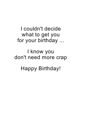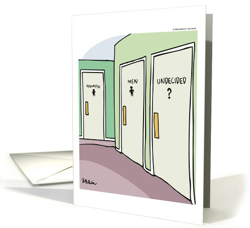 Birthday Humor. Three washroom doors in a hallway, one woman, one men and one undecided. Inside reads, I couldn't decide what to get you for your birthday. I know you don't need more crap. Happy Birthday! Thanks for checking out my greeting cards. More cards: http://www.greetingcarduniverse.com/community/store.asp?store_id=2337&gcu=42744787710&mid=cwu