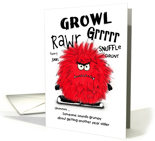 | Title: | Grumpy Red Fuzzy Monster Birthday Card |