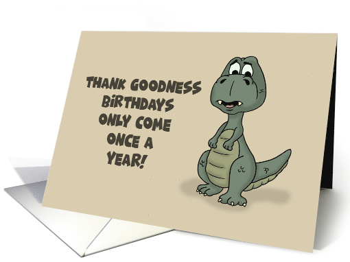 | Artist Notes: | Humorous Birthday Card with a cartoon dinosaur on a tan background. The words say: Thank goodness birthdays only come once a year! Inside says: Otherwise I'd go broke sending you card after card! Happy Birthday |