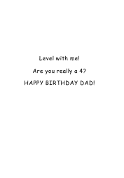 Inside: | Level with me! Are you really a 4? HAPPY BIRTHDAY DAD! |