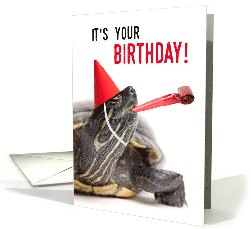 | Artist Notes: | An adorable red eared slider turtle dressed in a party hat ready for a birthday! The inside reads, "I hope your day is turtley awesome!" |