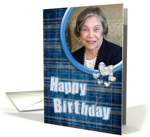 | Title: | Birthday photo card for husband with silver heart balloons |