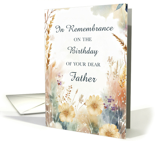 | Artist Notes: | The birthday of a father who is no longer here is a time to reflect on cherished moments and the legacy he left behind. This remembrance card offers a heartfelt way to honor his memory, with a natural wildflower design in warm, earthy hues. The soft cream background adds a sense of tranquility, while the message conveys support and care. A meaningful way to let someone know their father is remembered and celebrated. |