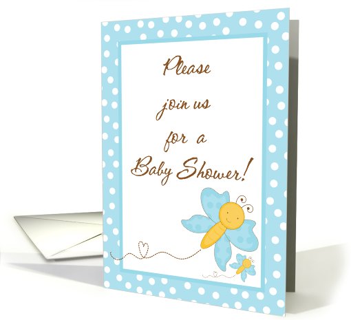 Baby Shower Invitation, Light Blue Butterfly with Baby Butterfly.
