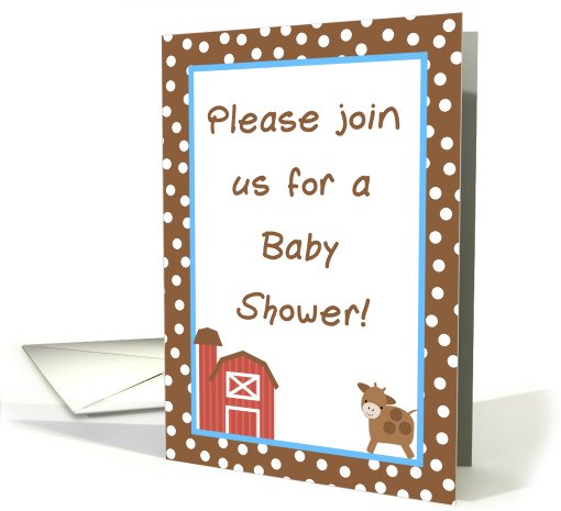 Farm Blue Barn Moo Cow Baby Shower Invitation