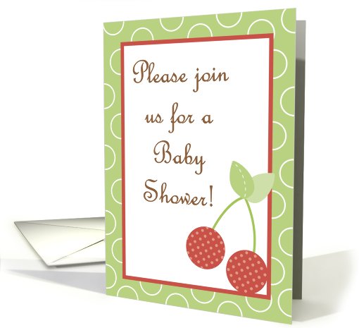 Artist Notes: This adorable Farm Fresh Red Cherries invitation is perfect for any little one's baby shower! ***You can change the inside text to print personalized information by clicking the orange personalize inside button above ***
