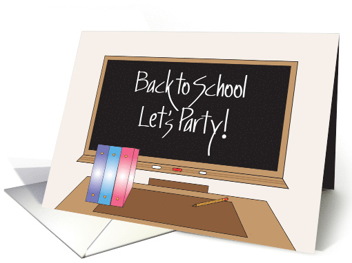 Title: | Hand Lettered Invitation to Back to School Party Blackboard and Desk |