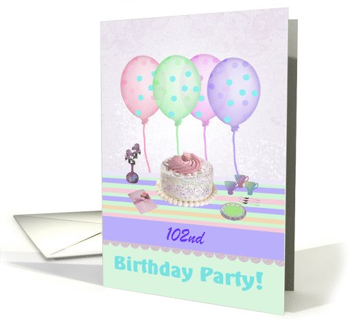102nd Birthday Party Invitation, Cake, Balloons, & Flowers, Custom Text