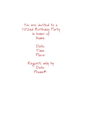 Gold text 102 in stage spotlight with red curtain backdrop for 102nd birthday party invitation.