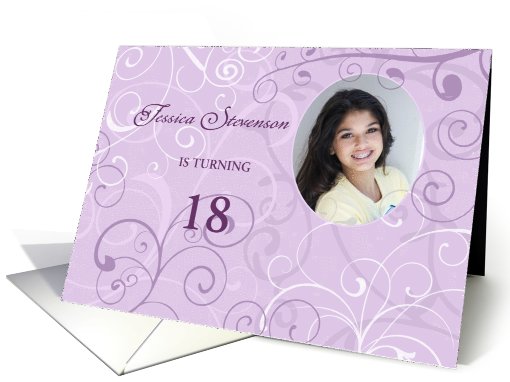 | Title: | 18th Birthday Party Invitation Photo Card - Lavender Swirls |