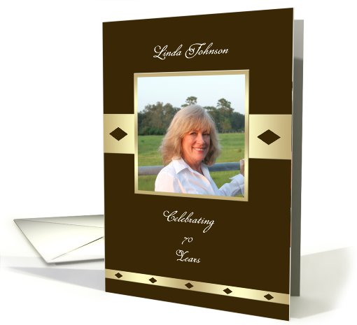 Brown and Gold Photo 70th (or any age) Birthday Party Invitations