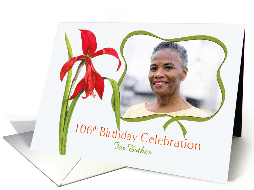 | Title: | Lovely Red Lily 106th Birthday Party Invitation, Custom Photo and Name |