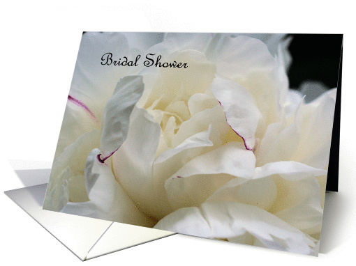 Beautiful macro white peony flower photo bridal invitation.