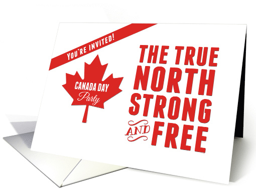 | Title: | Canada Day Party Invitation with The True North Strong and Free Phrase |