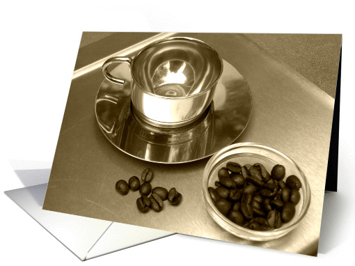 | Title: | Coffee Invitation - design coffee cup and coffee beans on tray photography |