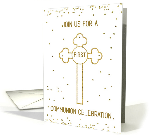 Artist Notes: | Invite friends, family and anyone close to a first holy communion. Let them know when and where with this sparkling cards with digital gems with a gold look. Send them this now. No gold will be used on this card. |