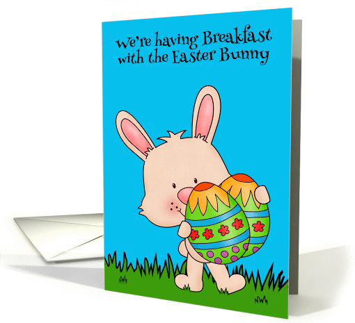 Invitations, Breakfast with the Easter Bunny, cute bunny holding eggs