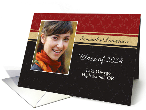| Title: | Graduation Party Photo Invitation - Black, gold and red |