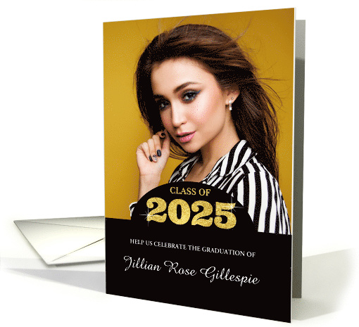 | Title: | Class of 2025 Graduation Party Invitation Grad's Photo Gold Bling |