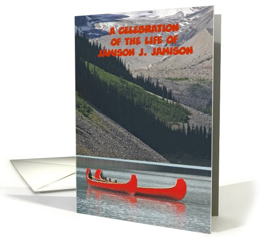 Title: | Celebration of Life Invitation, Mountain Canoes, Custom Front/Inside |