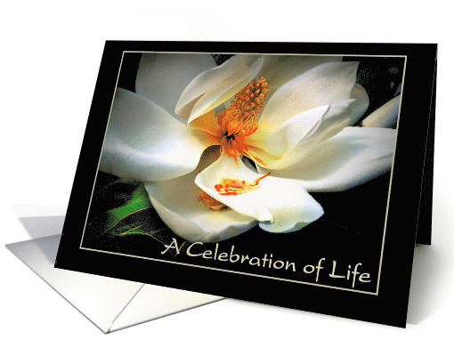 A fitting memorial for a dearly loved person, this Celebration of Life invitation features a magnolia flower in bloom. If you wish, you may add a photo to the inside as well as change the inside text to your own liking. The magnolia flower is an especially meaningful symbol if the one you have lost was from the southern part of the USA. The sweetness of the flower and its creamy whiteness will bring memories of summers beneath the magnolia tree and happier times in the past.