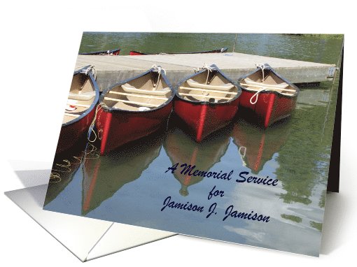 Title: | Memorial Service Invitation, Red Canoes, Personalize Cover/Inside |