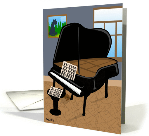 | Artist Notes: | Piano Recital Card - A piano in the music room, sheet music on the chair and ready for a performance. Illustration by LD Gonzalez, 2016. |