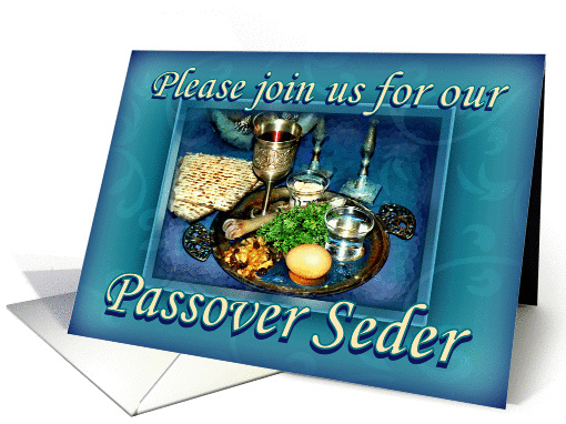Passover Seder Invitation, Aqua Blue Seder Plate
